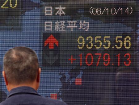 週明け14日の東京株式市場は、前週末の先進7カ国財務相・中央銀行総裁会議(G7)が打ち出した金融危機対策への期待の高まりで13日のニューヨーク市場が過去最大の上げ幅を記録したことを受けて、急反発した。日経平均株価の終値は前週末に比べて1171円14銭高の9447円57銭まで回復した。上昇率は14.15%に達し、終値で過去最大だった平成2年10月2日の13.24%を超えた。